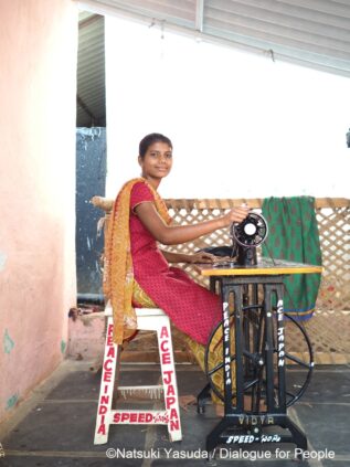 ミシンを使って仕立て屋さんになるための職業訓練を受ける女の子(インド)