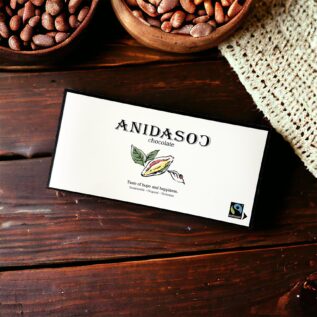 2023年12月には、ACE創設25周年を記念し、ACEの活動地域で生産されたカカオを使用したチョコレートを、立花商店、クラウン製菓、市川歩美さん(チョコレートジャーナリスト)と共同開発。現地の言葉で「希望」を意味する「ANIDASOƆ-アニダソ」と名付けました。UPDATERの協力により、生産地までのつながりがブロックチェーンでたどれる技術も搭載しました。1枚につき500円が生産地支援になるチョコレートによる課題解決にむけた取り組みの輪の広がりを目指しています。