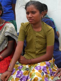 シャンティさん(仮名/12歳)とは、2009年8月に出会いました。インド南部のアンドラ・プラデシュ州のある村で農家に雇われ、コットンの種を作る畑で働いています。5歳から働き、学校へは一度も行ったことがありませんでした。朝は6時に起き、水くみ、掃除をして8時頃に朝食を食べて、畑まで約2キロ歩いていきます。
