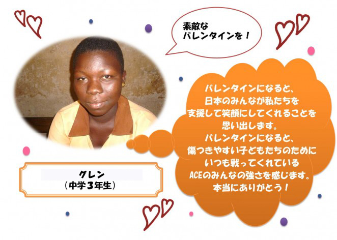2015年も、ACEが支援しているガーナのカカオ生産地域の子どもたちから、バレンタインメッセージが届きました。