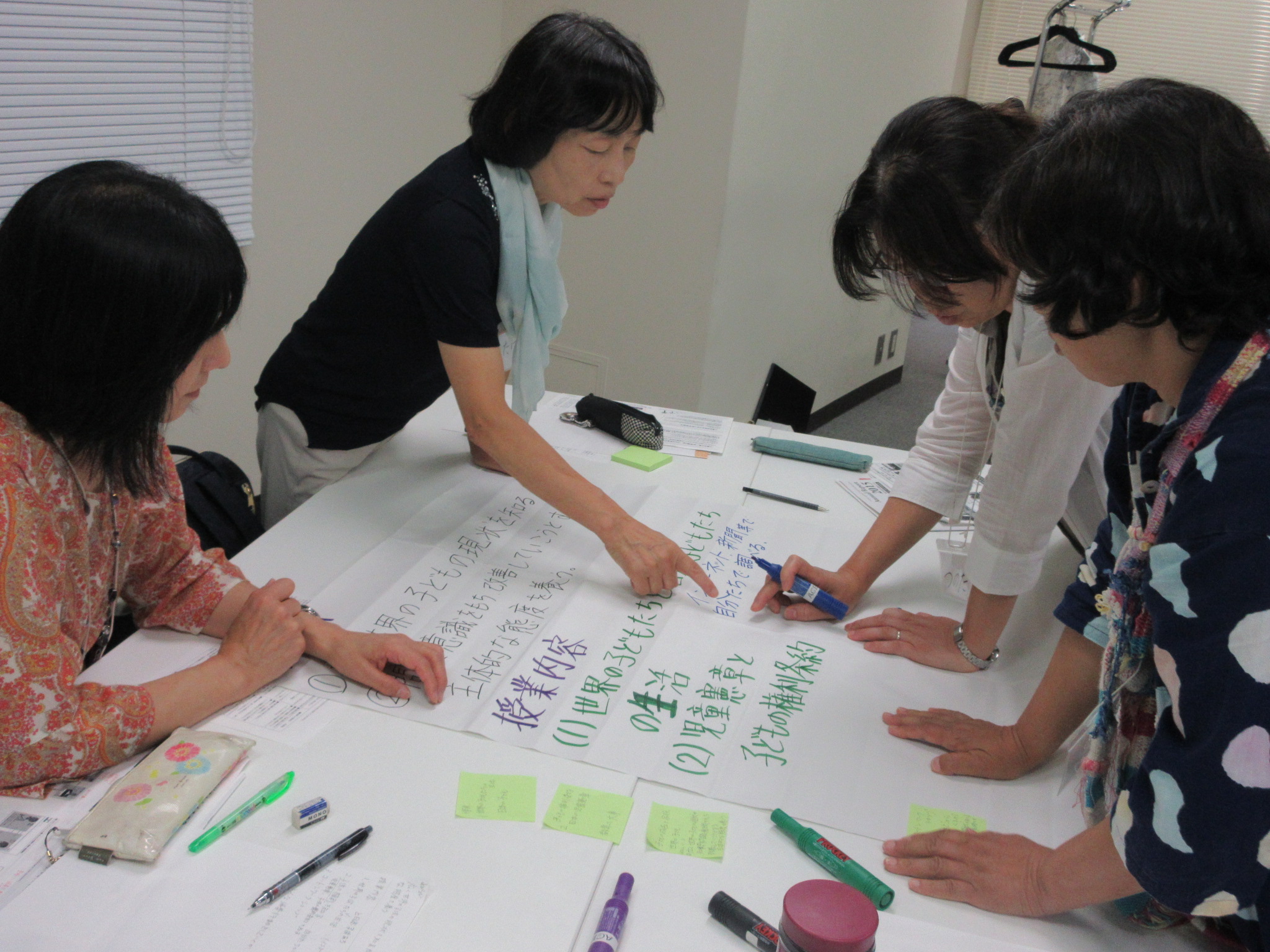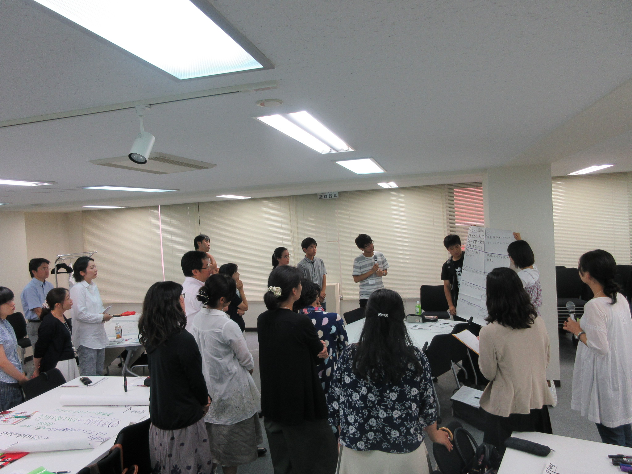 また、今回は中高生の参加者も来ていたため、教員グループがつくった授業案を評価したり、アドバイスする場面が見られました。