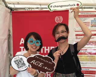 ブースでは、ACEの活動紹介やオリジナルグッズを販売のほか、「Change Our Luck」というテーマを掲げ、フォトアクションへの参加を呼びかけました。 2日間とも、天候に恵まれ、たくさんの方にブースを訪れていただきました。ご来訪くださった方、ブース出展を手伝ってくださった方、誠にありがとうございました。以下に、ACE出展の様子をご報告します。