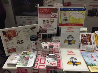 ACEのブースでは、児童労働やACE活動についてお話したり、購入金額全額がガーナの子どもたちへの寄付になる「1 more LOVEチョコステッカー」やミッフィーで知られるディック・ブルーナさんによるイラストを使った「ストップ!児童労働 クリアファイル」、書籍などの販売を行いました。