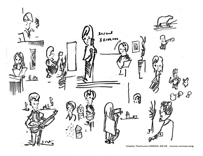 Usatoさんは、出品作品の絵画に加えて、Usatoさん制作のキャラクター “描くウサ” の缶バッチまで作ってきてくださいました。そして、会場に来ていた参加者の皆さんの似顔絵も描いてくださり、皆さん大喜び!