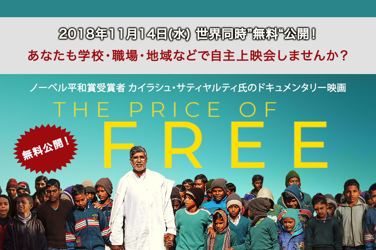 世界同時”無料”公開:カイラシュ・サティヤルティ氏ドキュメンタリー映画 “The Price of Free” 〜 あなたも上映会を開催しませんか?