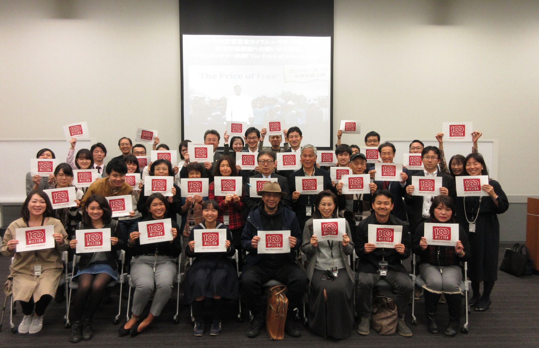 カイラシュさんのイニシアティブで開始した100ミリオン・キャンペーンは、2018年11月14日を「世界同時上映の日」とし、世界中の人たちがこの映画を鑑賞しました。