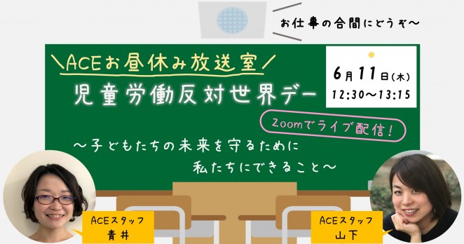 \Zoomでライブ配信/ 【児童労働反対世界デー前日】ACEお昼休み放送室