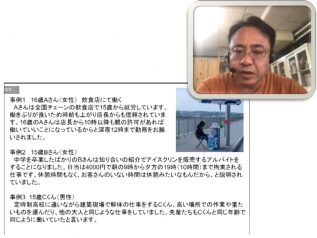 「知ってる? 働く人を守るルール」勉強会は、子どもに関わっている方々向けと子ども向けに2つを同日に開催し、それぞれ43名と21名のご参加がありました。うるま市の会場で行う予定だったのですが、東京も沖縄も緊急事態宣言下だったためオンラインでの勉強会となりました。