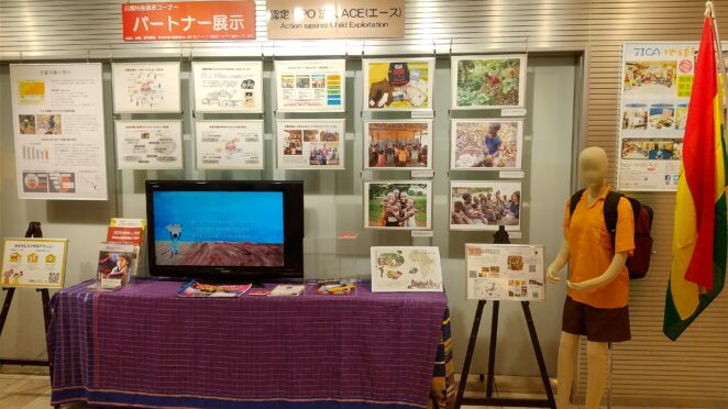東京・市ヶ谷のJICA地球ひろばが隔月で実施している「パートナー(NGO、企業、教育機関、自治体等)展示」にて、6月はACEがパートナー展示として取り上げられ、児童労働の現状やACEの活動紹介について出典しています。