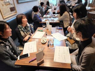 都合がつかないスタッフもいたため全員集合とはいきませんでしたが、16名が集まりました。楽しくおしゃべりをしながらの食事のあとは、「私にとってのACE」とは何かを各自で考え、紙に書いて、グループごとにメンバーを入れ替えて共有し合う時間を持ちました。それぞれ熱心に話し合い、祝福し合い、笑い、時に感極まるひと時もあったようです。