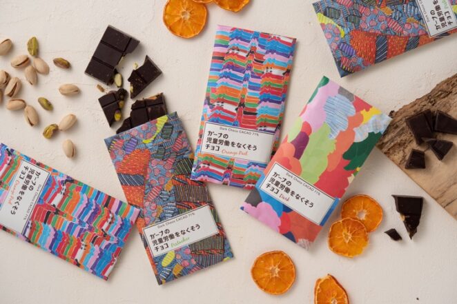 タドれるチョコ「ガーナの児童労働がなくせるチョコ」は、今年は昨年販売したダークに、オレンジピールとピスタチオが加わり、3つのフレーバーが楽しめます。株式会社UPDATERが運営する「TADORi」のウェブサイトまたは、当プロジェクトに参画している川崎ブレイブサンダースのウェブサイトで購入可能です。