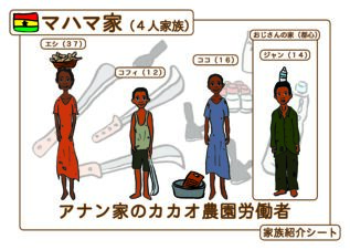 3名ほどのグループに分かれて、ガーナのカカオ農家で小作人として働く「マハマ家」の家族になりきってもらい、貧困家庭の暮らしの実態を感じながら、限られたお金を何のために使うか(飲食費、教育費、衣服代など)をグループで考え、発表してもらいました。