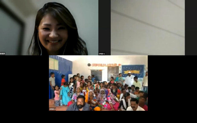 イベントでは、インド プロジェクトマネージャーの森瑞貴が、インドのプロジェクト地を訪れているACE代表の岩附由香とオンラインでつないで、学校の様子を紹介したり、子どもたち・おとなたちの声を聞きました。