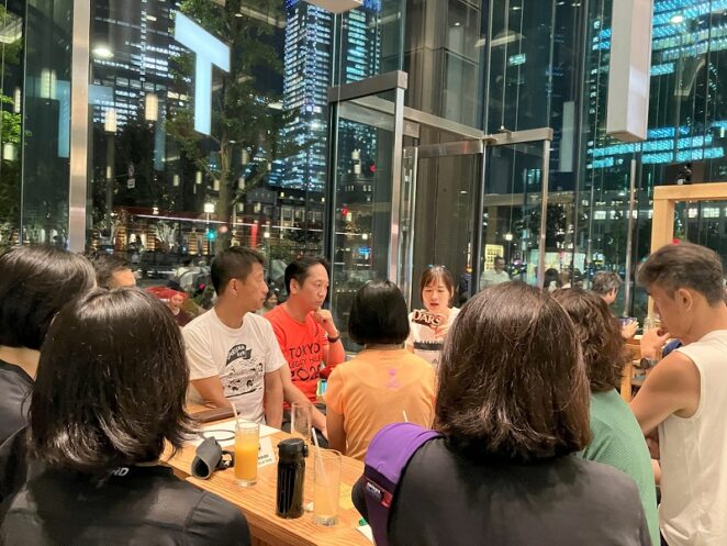 2023年7月19日の夜、大会に向けての決起会の意味も込めて、チャリティランナーのみなさんにご参加いただき練習会とトークイベントを開催しました!