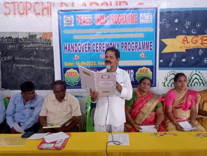 SPEED代表ラヴィ氏の開会挨拶に始まり、これまでのプロジェクト活動や成果を振り返るともに、スタッフと住民に日々の活動への感謝と労いの言葉がかけられました。緊張した面持ちの住民もいましたが、式典は粛々と進められ、今後の活動は住民主体で実施されること、これまで十分に能力強化がなされているから安心して託すことができること、などが丁寧に説明されました。