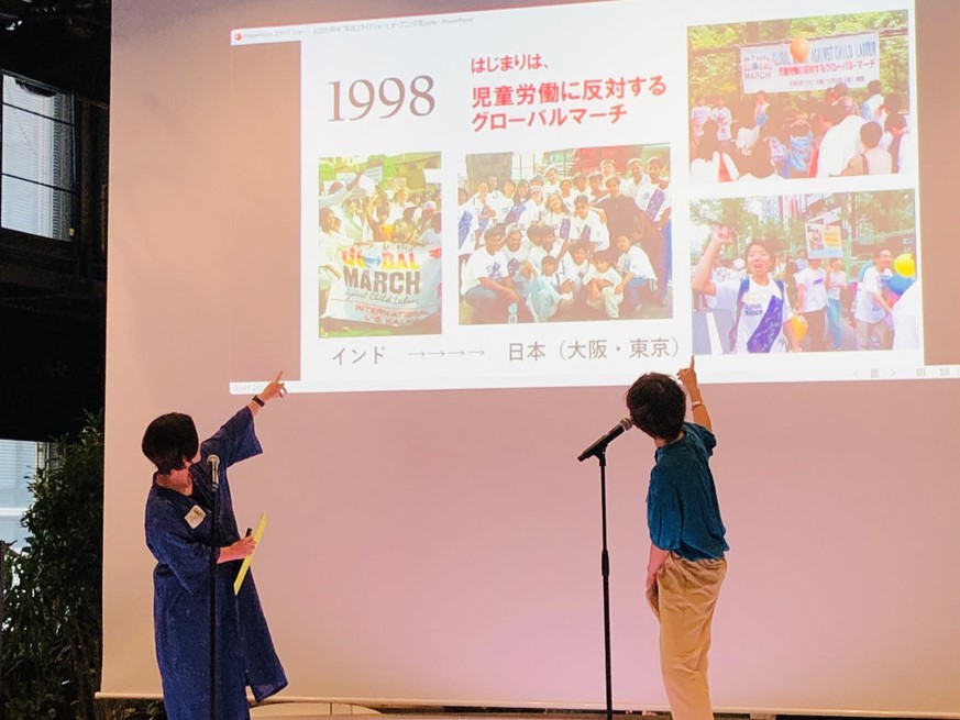 オープニングでは、ACE副代表白木さんと事務局次長成田さんが、ACE設立からの25年間をスライドをお見せしながら振り返りました。