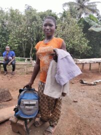 今年8月、プロジェクトでは、現在活動している2つの村の経済的に困窮した家庭の子どもたち66人に学用品のセットを支援しました。学用品セットには、制服や靴下、靴、鞄、えんぴつ、消しゴム、ノートなどの筆記用具などが含まれています。学用品を受け取った子どもたちは、児童労働をしていたり、学校に行っていなかったり、学校には登録しているけど休みがちな子どもたちです。
