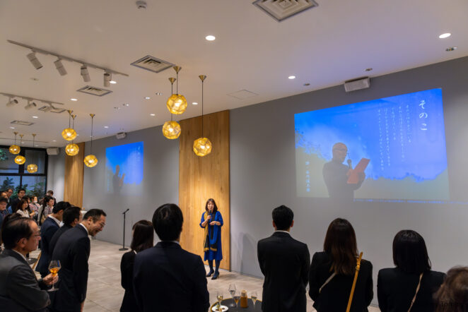 歓談の時間を挟んで、その後、ACE代表岩附より、谷川俊太郎さんがACEのために書き下ろしてくださった詩「そのこ」の裏話などをお話ししながら、ご参加の皆様に「そのこ」の動画を観ていただきました。