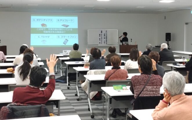 2024年2月3日(土)、香川県高松市のSDGsエシカル消費講演会「世界の子どもの未来を変える“お買い物”とは?~エシカル消費と児童労働~」にACEスタッフの青井が講師として登壇しました。