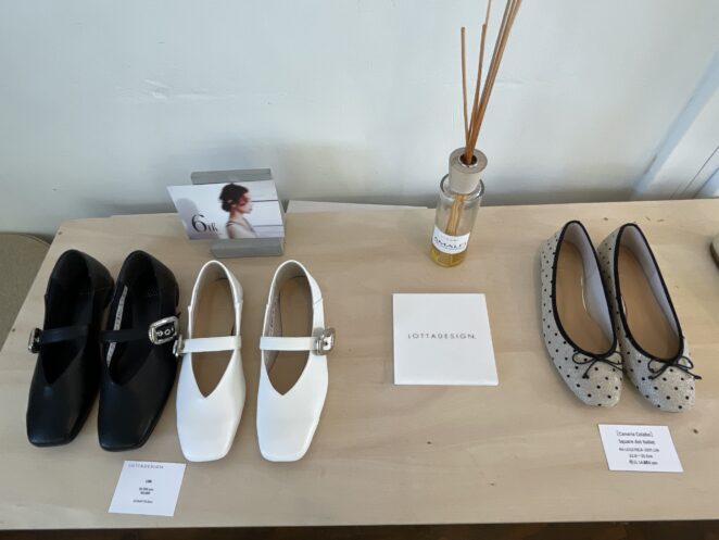 店内には様々なシーンや季節で活躍しそうなフラットシューズが並び、好きな形や色を組み合わせたお気に入りの靴を探し出す感覚にわくわくします。