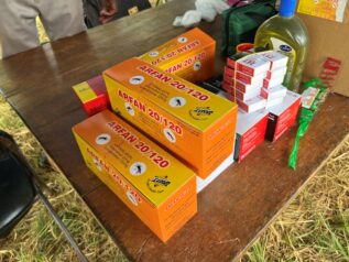 当日は大勢の人々がテントの下で順番を待ち、合計230名が健康診断を受けました。中でも印象的だったのが、カカオ農家の女性のゼナブさん親子です。ゼナブさんは4歳くらいの双子の息子さんたちと一緒に健康診断に来ていましたが、息子さんの一人はマラリアに罹患、もう一人はお腹に回虫がいることがわかりました。