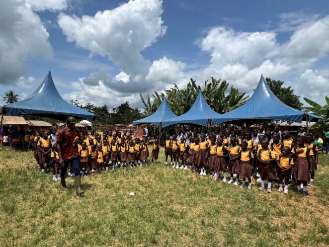 国際労働機関(ILO)が定めた6月12日の「児童労働反対世界デー」に合わせて、現在プロジェクトで支援している2村合同でイベントが実施されました。そこでは、あらためて児童労働について啓発することに加え、ガーナ健康向上プログラム(GHIP)や学用品の贈呈式がおこなわれました。