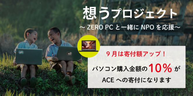 ACEは、環境への負荷ゼロ・難民ゼロを目指すエシカルパソコン「ZERO PC」のNPO応援企画「想うプロジェクト」のパートナー団体です。ZERO PCでパソコンを購入する際にACEを応援したい団体として選んでいただくと、購入金額の一部がACEへの寄付となります。