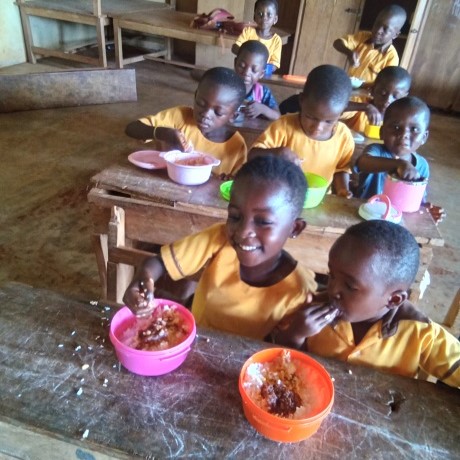 それは、村の住民ボランティアである「子ども保護委員会」(CCPC)の啓発活動の賜物であることも勿論ですが、ACEのスマイル・ガーナプロジェクトと現地の学校運営委員会(SMC)、保護者で運営している学校給食も大きく貢献していると考えています。