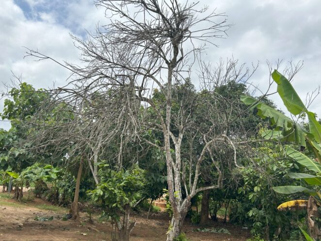 ACEスタッフが5人のカカオ農家にヒアリングしたところ、5人中5人ともカカオの収量が減少しており、そのうち4人は昨年の半分以下に減少したとのこと。9袋(※カカオの麻袋1袋は64キロ)とれていたカカオが1袋に減ってしまった人もいて、状況は深刻です。