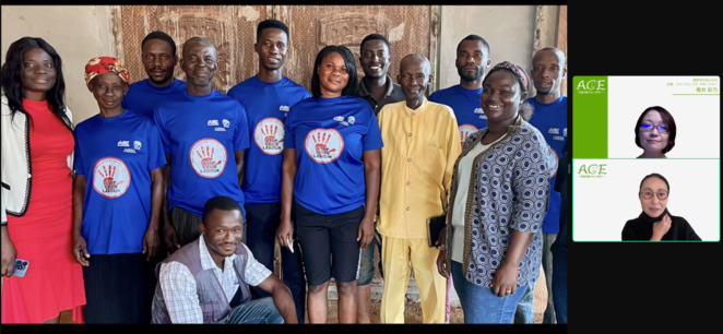 2024年12月6日(金)、支援者のみなさまにACEの2024年の活動をご報告する活動報告会をオンラインにて開催しました。55名の方にお申込みいただき、リアルタイムでは約30名の方にご参加いただきました。2024年のACEの活動の総括と、ガーナでの活動について現地の状況など中心にご報告することができました。
