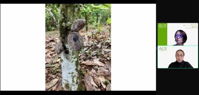いま、ガーナを含む西アフリカでは、気候変動や病害虫の被害、森林伐採、違法な金鉱採掘による土壌汚染などが原因で、カカオの収量が激減してしまっています。この「カカオ危機」の背景にある、農園の管理における課題や違法採掘の問題などについてご説明しました。