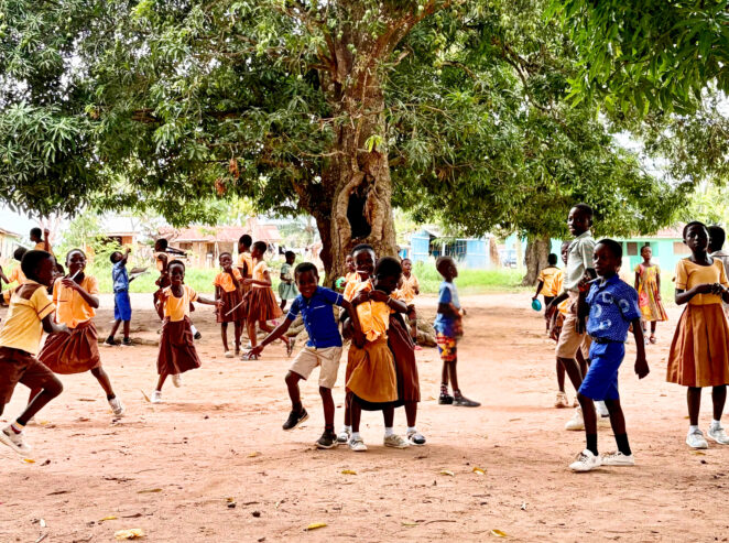 3月、ガーナを訪れ、スマイル・ガーナ プロジェクトを卒業した2つのコミュニティを視察しました。訪問した学校では、子どもたちが笑顔で迎えてくれました。授業のことを尋ねられて恥ずかしそうに答える子、来客に興奮して飛び跳ねる子――その様子を、子ども保護委員会(CCPC)のメンバーが目を細めて眺めていました。