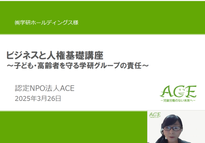 「“ビジネスと人権”って、難しそう?」―――そんな印象を少し変えるきっかけになったのが、今回の学研グループでの研修です。今回は、学研グループでACEが実施したサステナビリティ研修の様子とそこに込めた想いについて、研修の講師を担当した佐藤よりご紹介します。