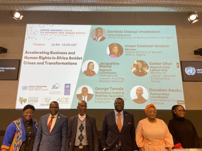 フォーラムに参加した重要な目的のひとつは、アフリカをテーマにしたセッション「Accelerating Business and Human Rights in Africa Amidst Crises and Transformations(抄訳:危機と変革のさなかにおけるアフリカにおけるビジネスと人権の加速化)」の共催者として、ACEとJICA(国際協力機構、以下JICA)が児童労働フリーゾーンの取り組みを国際社会に発信・周知することでした。