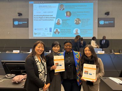 ACEはJICAとともにアフリカ地域セッションを共催し、ガーナ政府関係者の登壇を通じて「児童労働フリーゾーン」の取り組みを国際社会に発信しました。あわせて、関連資料の作成・配布や、各種セッションへの参加、現地ステークホルダーとの情報交換を行い、ビジネスと人権をめぐる最新動向の把握とネットワーク構築につなげました。