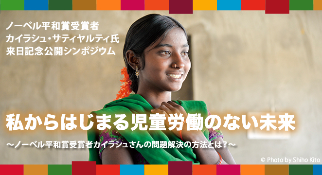 ※事前申込は締め切りましたが、当日会場でもご参加を受け付けております。ご参加希望の方は申込フォームよりご連絡いただき、直接会場にお越しください。 2015年9月、ニューヨークの国連本部で行われた持続可能な開発サミットで、ノーベル平和賞受賞者カイラシュ・サティヤルティさんは「児童労働、人身売買、子どもへの暴力、奴隷制がもしなくならなければ、他の目標も達成出来ないだろう。未来への意思を形にしたのが持続可能な開発目標。これを行動に移さなければならない。その未来へ向けともに手を取り歩みましょう、教育の行き届いた平和な世界へ。」と各国代表へ語りかけました。この時採択されたのが、2030年までにあるべき世界の姿をまとめた国連持続可能な開発目標です。17の目標と169のターゲットからなり、目標8の中には「2025年までにすべての形態の児童労働を終わらせる」ことが明記されています。 カイラシュ・サティヤルティさんは長年の児童労働や教育への功績を認められ、2014年にマララ・ユフスザイさんとノーベル平和賞を同時受賞しました。受賞後初の来日となるカイラシュさんと共に、SDGs達成に向けて、私たちひとりひとりがどのようなアクションによって未来を切り開くことができるのか、考えるシンポジウムを開催します。 プログラム