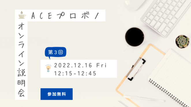 ACEで現在募集しているプロボノについてのオンライン説明会を開催します。ご自身の仕事の経験・スキルをACEの活動で活かしてみたい!という方、ぜひご参加ください。