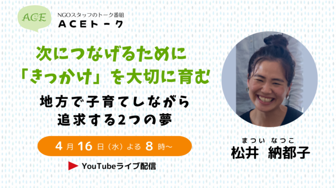 - 【ACEトーク】松井 納都子:次につなげるために「きっかけ」を大切に育む 地方で子育てしながら追求する2つの夢