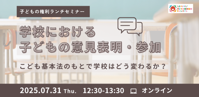 【子どもの権利ランチセミナー】学校における子どもの意見表明・参加 ~こども基本法のもとで学校はどう変わるか?~