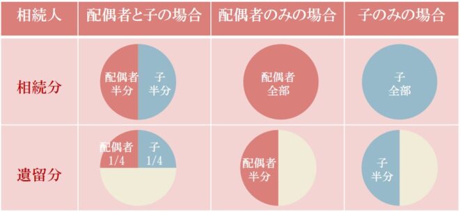 法定相続分と遺留分は次のとおりです(例)